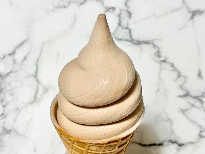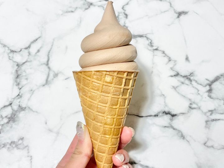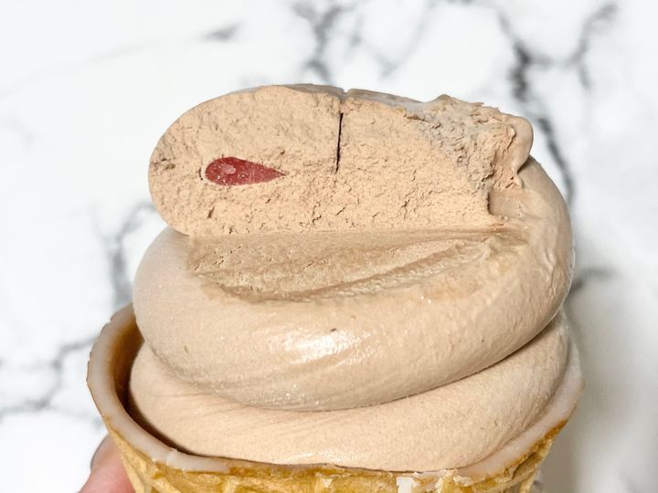 ソフトクリームの中には甘酸っぱいラズベリーソースが入っていてアクセントに。