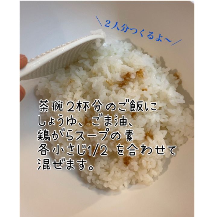 1.よく混ぜ合わせた✩の調味料を、ご飯に混ぜます。