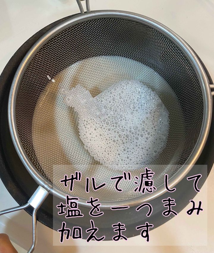 2. 1をザルで濾して、塩を一つまみ加えます。
