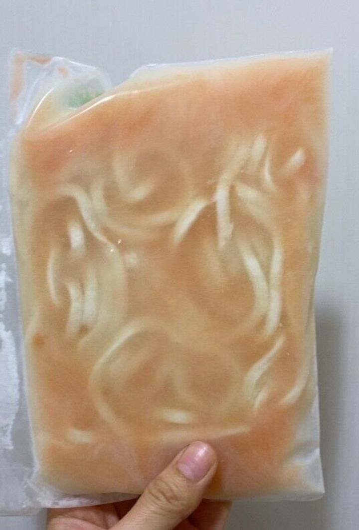 ※麺は半分に切って、半分ずつ出せるように冷凍すると解凍する際の容器に困らず、半分だけ食べることもできるのでオススメです!