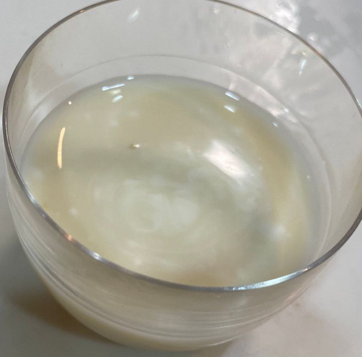 レンジで溶かしたグミの粗熱が取れたら、少しずつヨーグルトに加えて、よく混ぜ合わせます。