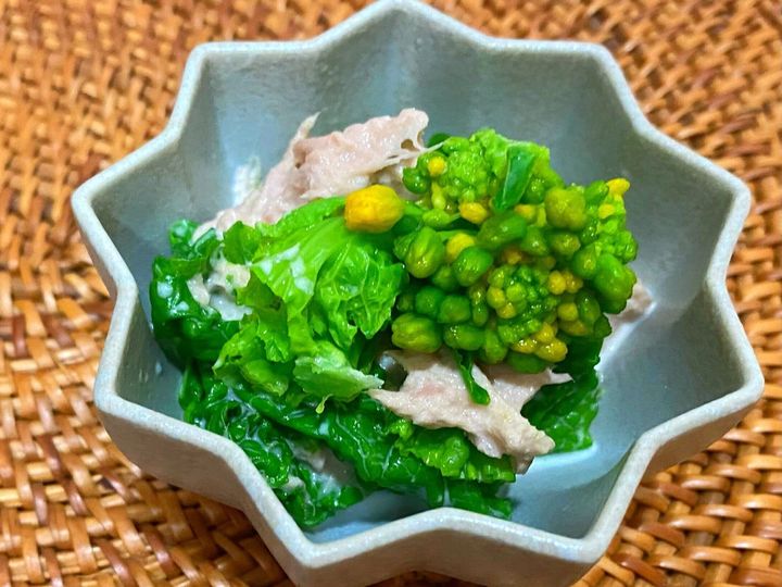 ツナとマヨネーズで菜の花の苦味が気にならない1品です。