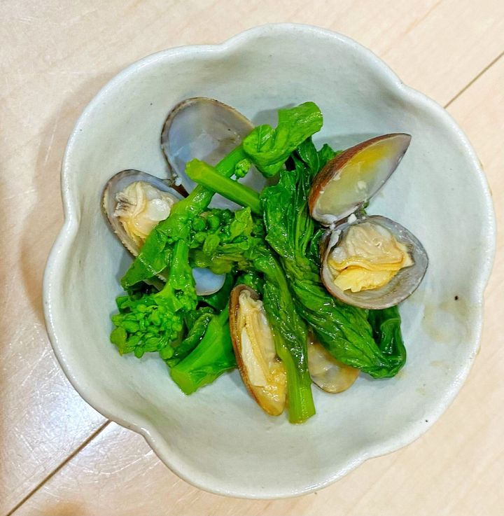 アサリから出た美味しい出汁が菜の花に染み込んで、とても美味しいです。