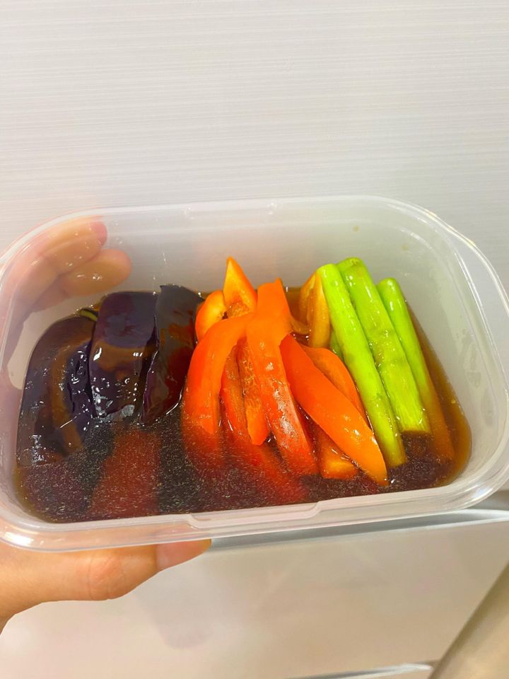 グリルで焼いた野菜を麺つゆで作ったタレに漬け込むだけ。お出汁の染みた野菜はいくらでも食べられます!