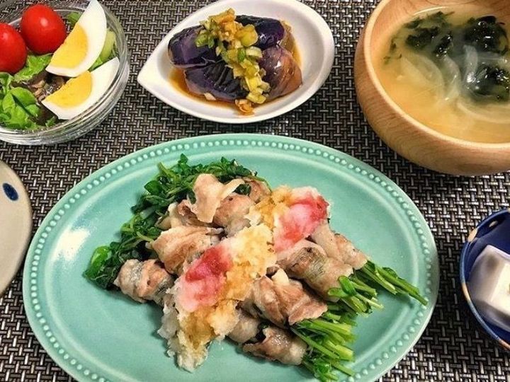 豆苗の肉巻き 梅ポンソース