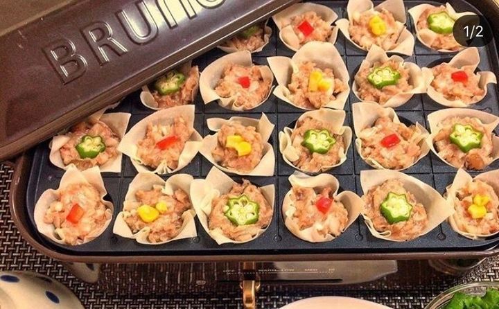 ごま油を引いたたこ焼き器に、皮と種を入れ、お水を入れて蒸し焼きにします。皮は揚げたようにカリカリに、お肉はジューシーで美味しいです。