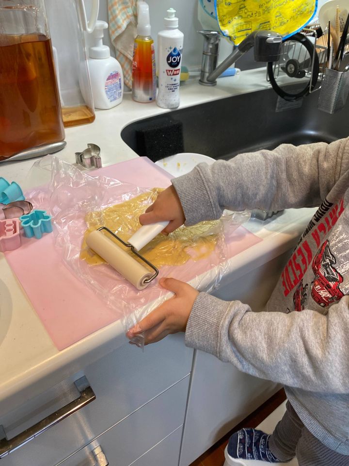 食品がくっつきにくいので、上でクッキー生地を伸ばして型抜きもできました♪