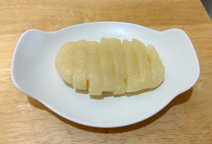 1. 耐熱皿にお餅を入れ、大さじ1ほどの水を入れてラップをかけ、600Wのレンジで2分ほど温めます。