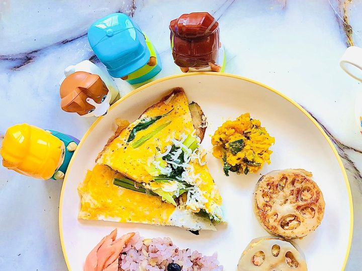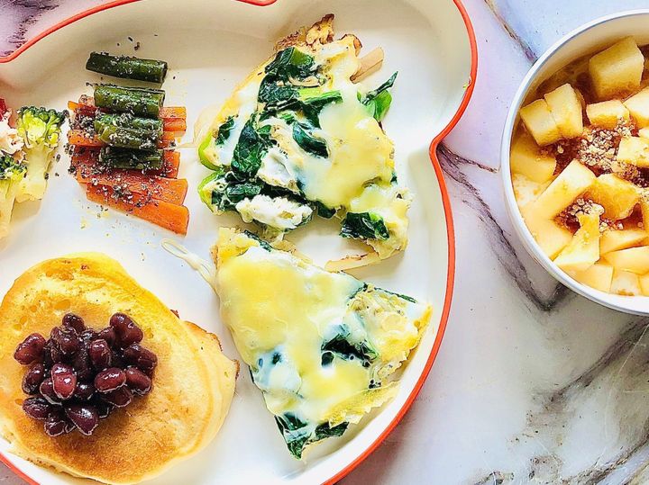 卵は消化にも良いので、朝にぴったりなたんぱく質。目玉焼きや卵焼きも美味しいですが、子どもがいるなら野菜も一緒に沢山食べてもらいたいので、具沢山に。また、野菜室の残り野菜が使えるので、無駄なく使えておすすめですよ。私のおすすめトッピングはチーズです!ぜひ、バリエーションを増やして朝ごはんの時間を楽しく過ごしましょう♪