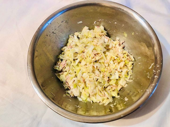 ①キャベツはみじん切りにする。