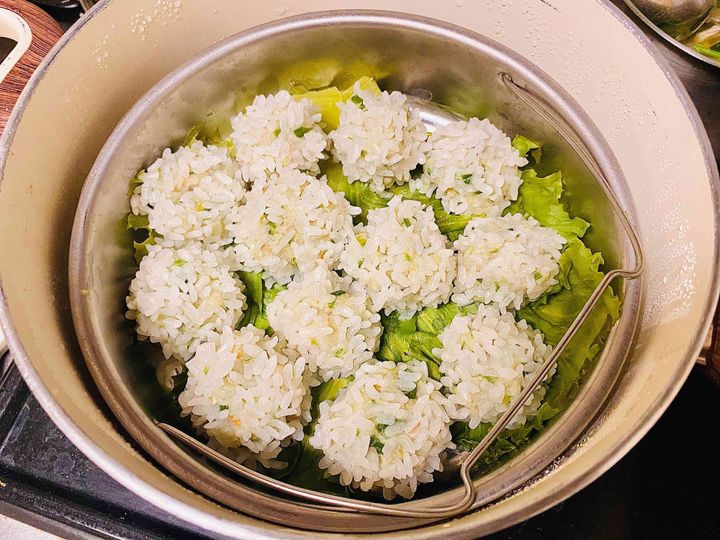 レタスやキャベツは、なくてもくっつくことなく美味しく仕上がりますが、鮮やかさをプラスしたかったので一緒に蒸しました。余った分は、保存用のタッパーに入れてレンチンすればまたおいしく食べられますよ。蒸し台は、ダイソーで購入した商品。ひとつ持っておくと、本当に便利!子どもがすきな蒸しパン作りにも重宝しますよ♪