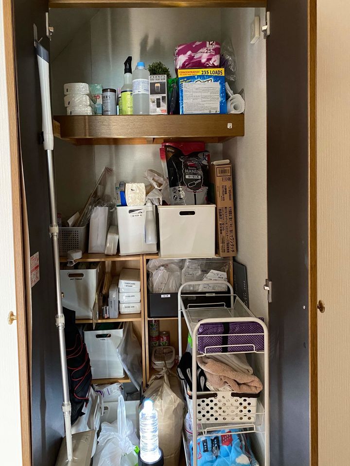 整理収納アドバイザーという肩書きがありながらも、こんなに荒れていました…。出入りの激しい日用品を収納していたので、荒れやすかったと思われます。
