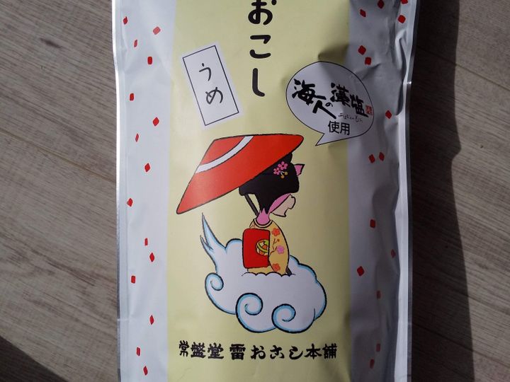 雷おこしの麦と水飴の味はそのまま、うめと塩の甘しょっぱい味で癖になり止まりません。