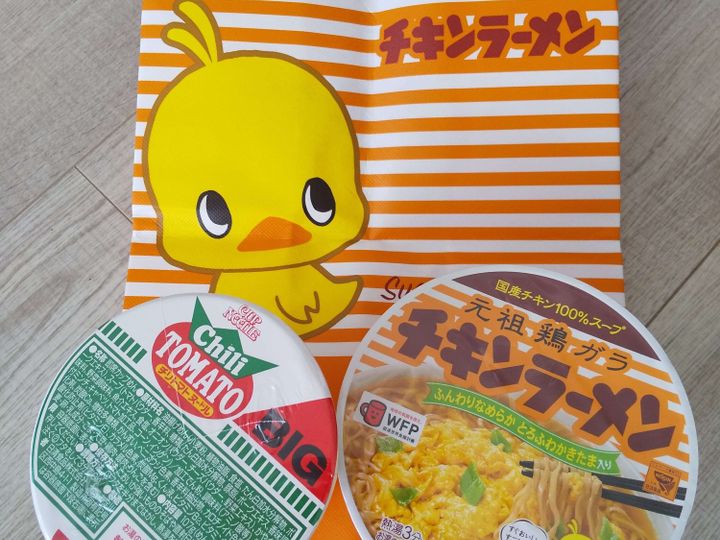 対象商品(チキンラーメンの他、カップヌードルシリーズ、チキンラーメンはカップ麺だけ)を2個購入でエコバッグ(3種類)が1つ選べます。