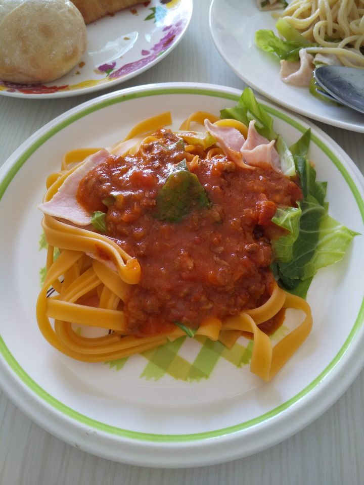 180円という手軽な値段の割には挽き肉もたっぷり入っていて、トマトの甘さが引き立つ濃いめのソース。今回いただくのは2回目。初めて食べた時に「これは、あの有名店の人気メニューのソースに似てる!」思い立ったが吉日、早速再現しました。
