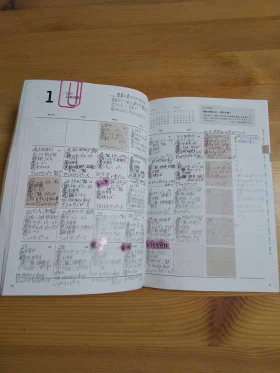 食事記録は次の月の献立表として、コーデは次の月に着れば悩まなくてよし、意外と持ってると分かった瞬間、物欲が一気に消えました。