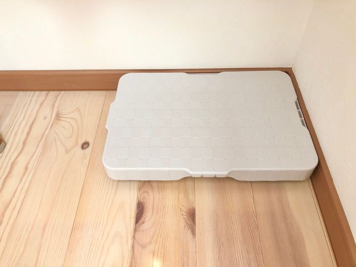 中身を取り出す時は、手前に引き出すのがお約束。その際のズレ防止に、耐震マットも敷きました。おかげで、ズレ落ちたことはありません。