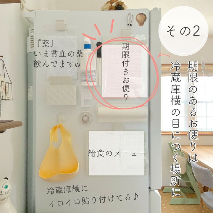 step2:期限のあるお便りは冷蔵庫横の目に付く場所に