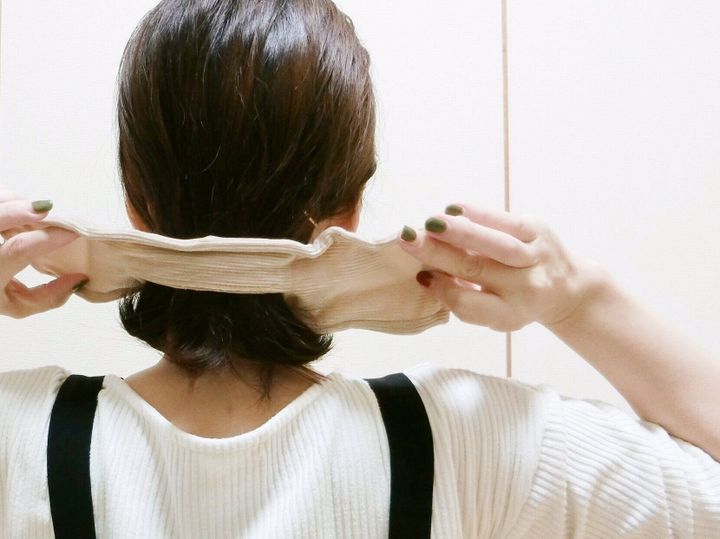 ヘアセットは本当に簡単! デフトバンの穴に髪の毛を通し毛先の方から内側にくるくると巻いていくだけ。