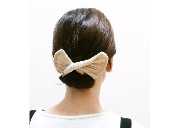 これ以上巻けないと思うところまでしっかりデフトバンに巻き付けたら、最後はデフトバンをクロスさせて完成です。ヘアゴムを使わずに簡単におしゃれな韓国シニヨンヘアを作れます。リボンのヘアアクセサリーをつけているように見えるのもカワイイですよね。