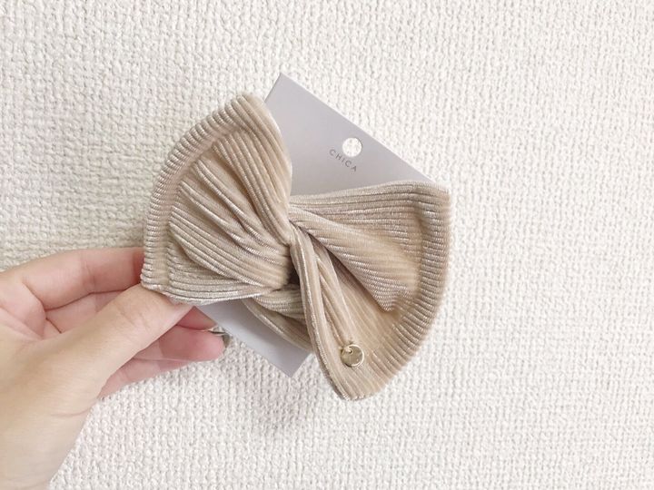 秋冬のファッションにピッタリの「ベロアリブデフトバン」(330円)。カラーはベージュの他にブラック・ブルーの3色展開で販売されています。以前発売されたサテン生地のデフトバンは完売するほど人気のアイテムの新しいデザイン。