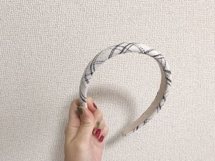 上品な印象をプラスしてくれる「ツイードチェックカチューシャ」(330円)。筆者が購入したホワイトとブラックの2色展開です。秋冬にピッタリのツイード柄はきれいめファッションはもちろんレトロなファッションとも相性が良いです。ご紹介した3つのうちでアラフォーが1番取り入れやすいカチューシャ。
