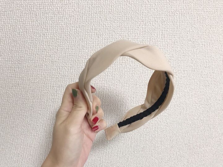 コーディネートの主役級の存在感を発揮してくれる「ねじりカチューシャ」(330円)。カラーは筆者が購入したアイボリーの他にも、ブラックも販売されています。ダウンスタイルにプラスすれば、簡単にレディライクなヘアアレンジが楽しめます。