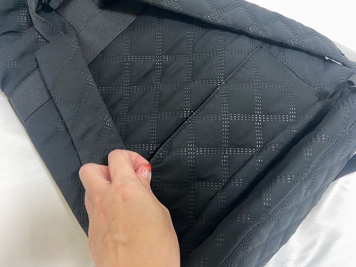 「エンボスキルト リュック」は、容量が約10L。たくさん荷物があるときにも問題なく使用できます。リュックといえばカジュアルな印象を持っている人も多いと思いますが、エンボスキルトを使用することで上品さがプラスされて、きれいめファッションにも合わせやすいデザインに。