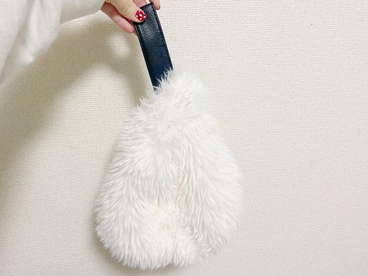 「フェイクファーハンドバッグ」(880円)は1,000円以下で購入できる高見えファッションアイテム。ふわふわの手触りとコロンしたルックスがとってもかわいいバッグは、普段のコーディネートに取り入れるだけで一気に冬の季節感を演出できますよ。カラーは筆者が購入したアイボリーの他にブラックとベージュ(茶)の3色展開で発売中!