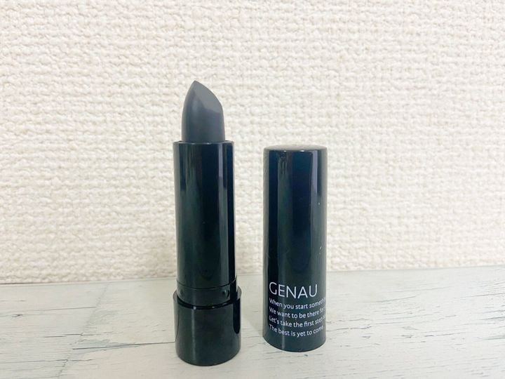 数あるラインナップの中から筆者が選んだのは「《自然な色に変わる》ナチュラル血色リップ/GENAU」(330円)。カラーバリエーションはグレーとブラックの2色展開です。「え?!そんなカラーのリップってアダムスファミリーになっちゃうよ?」っと思った人も安心してください。唇に付けると本当に薄付きなので、グレーやブラックには発色しません。