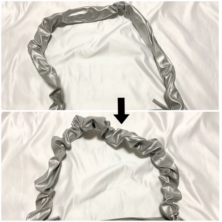 肩掛けの長さに調節すると、ショルダー紐がクシュっとなってとってもかわいい!