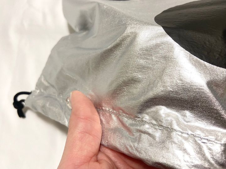 本体はナイロン100%でシャカシャカとした生地感です。メタリックでおしゃれ!