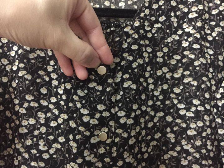 黒に白の小花プリントは、花柄に抵抗のある人でも着こなしやすくおすすめです。