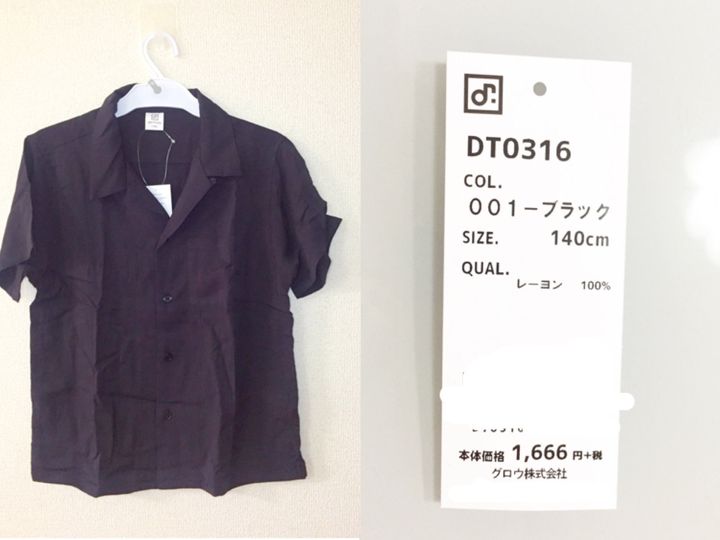 シャツは「レーヨンオープンカラーシャツ M1-2」(税別 1666円)