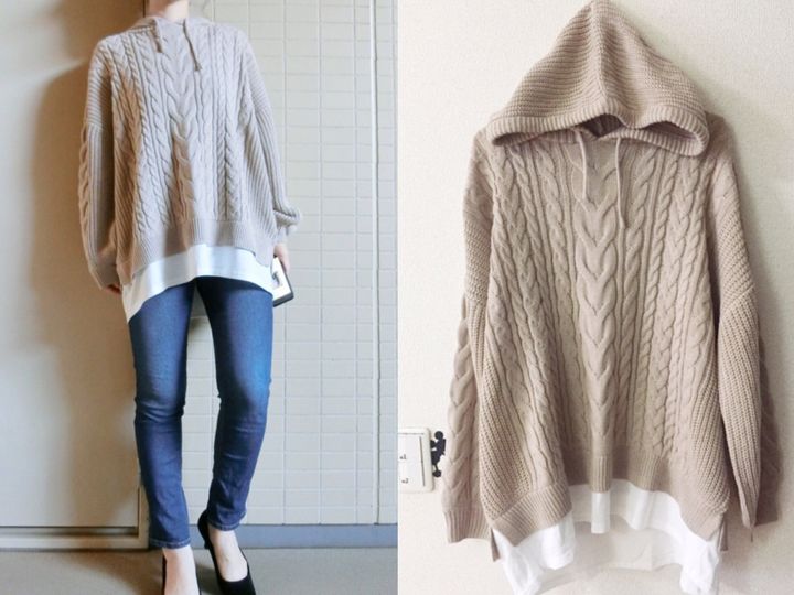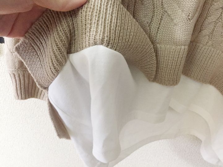 おすすめポイント1つ目が、最近流行しているチラ見せ重ね着風になっているレイヤードニットな点。