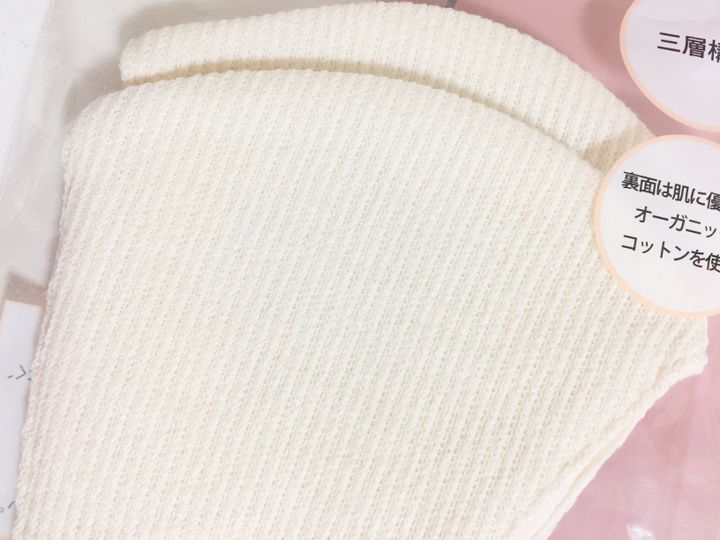 肌に触れる部分はオーガニックコットン100%素材を使用しているので肌あたりも優しい!フェイスラインにフィットする立体仕様で息苦しくないし、耳が痛くなりにくいように工夫されています。