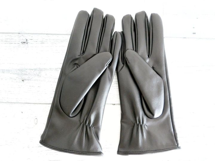 フェイクレザーの手袋はスマートな印象になり、手元が繊細で女性らしくキレイに演出してくれます。