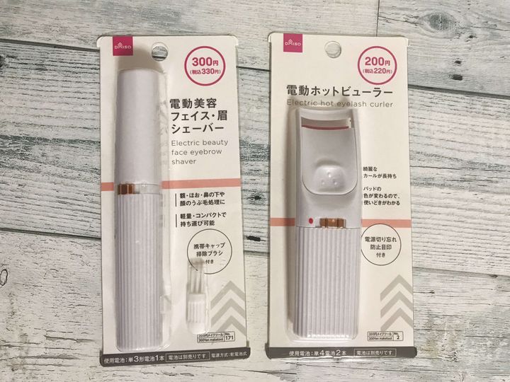 今回ご紹介するのが「電動美容フェイス・眉シェーバー」(330円 税込)と「電動ホットビューラー」(220円 税込)