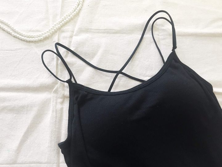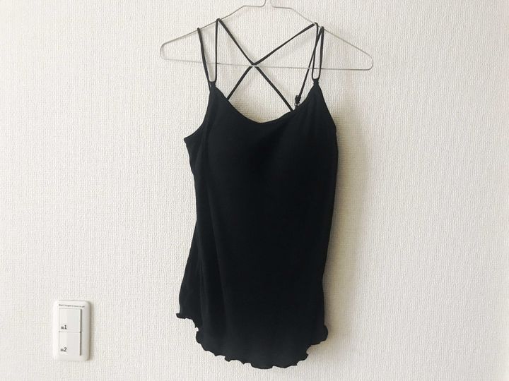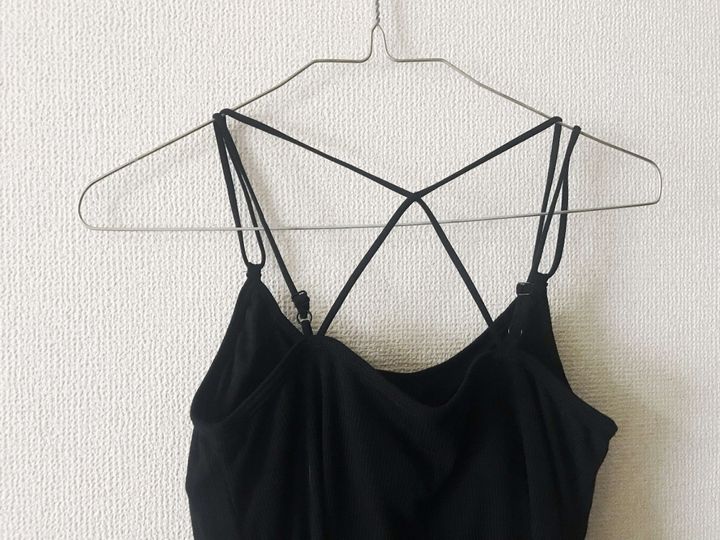 肩紐がクロスされているバックスタイルがかわいいのが特徴のこのキャミソール。