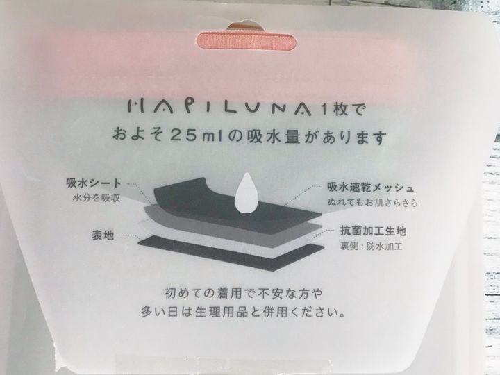 「HAPILUNA サニタリーショーツ」(1,320円 税込)は最近よく目にするようになった話題の吸水ショーツです。