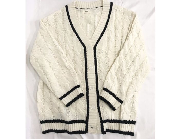 素材はアクリル100%のカーディガンですが、見ごろがケーブル編みになっていたりデザイン性も高く2000円以下とは思えないアイテム。