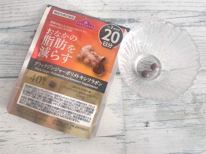 BMIが高め(BMI24以上30未満)の方の腹部の脂肪(内臓脂肪及び皮下脂肪)を減らす機能があることが報告されているブラックジンジャー由来のポリメトキシフラボンを1日2粒、サプリメントから摂取することが出来ます。
