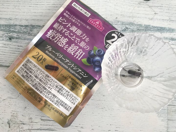 「ブルーベリーアントシアニン」(1296円)に含まれているビルベリー由来アントシアニンは、スマートフォンやパソコン等の使用により低下するピント調節力を維持することで、スマートフォンやパソコン等を使用することによる眼の疲労感を緩和する機能が報告されています。