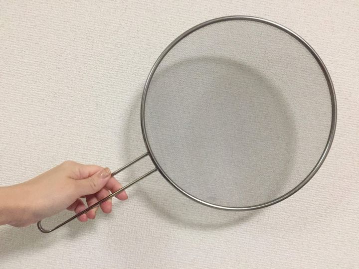 「油跳ね防止ネット」(330円)は調理中の油跳ねを緩和してくれるので揚げ物を作るときは必ず使用しています。