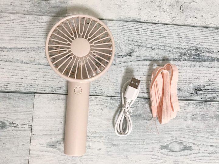 ハンディファン・充電用のUSBケーブル・ストラップの3点セットで500円以下というプチプライスですが、機能性は抜群です。