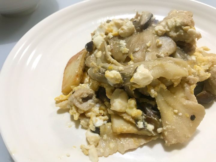 筆者は台風の影響で買い出しに行けなかった日に冷蔵庫にあるキノコ類・豚バラ肉・卵と組み合わせてチャンプルーを作りました。