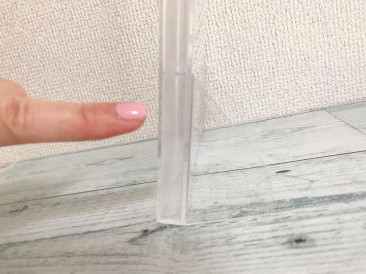 この収納ケースのお気に入りのポイントは、立てて見せる収納ができるように写真立てのように足があるところです。