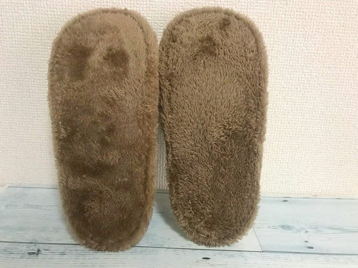 3COINSのお掃除スリッパは底裏がふわふわだけど短めの毛が特徴的。