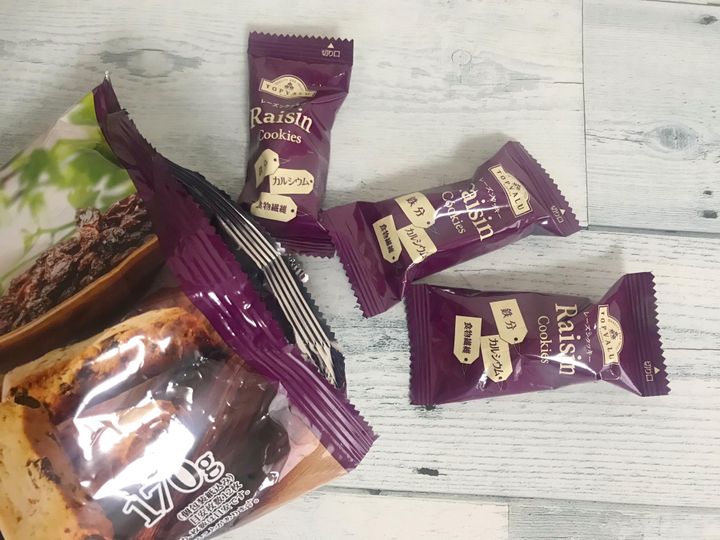 気になる鉄分・カルシウム・食物繊維をおいしく摂取でき、個包装なので急いで食べる必要もなく持ち歩きもしやすく、1つで満腹感を得ることが出来るイオントップバリュの「レーズンクッキー」。