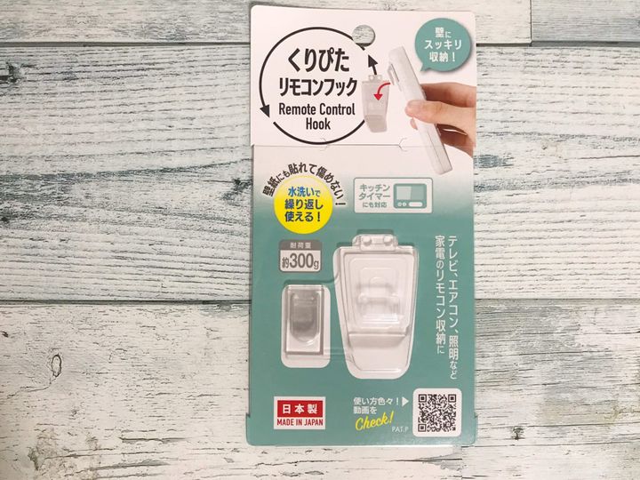 今回ご紹介するのは「くりぴたリモコンフック」(110円)。耐荷重は300gです。